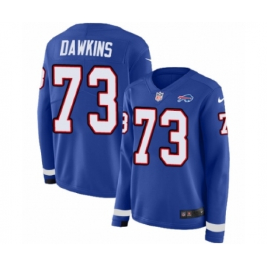 Women's Nike Buffalo Bills #73 Dion Dawkins Limited Royal Blue Therma Long Sleeve NFL Jersey