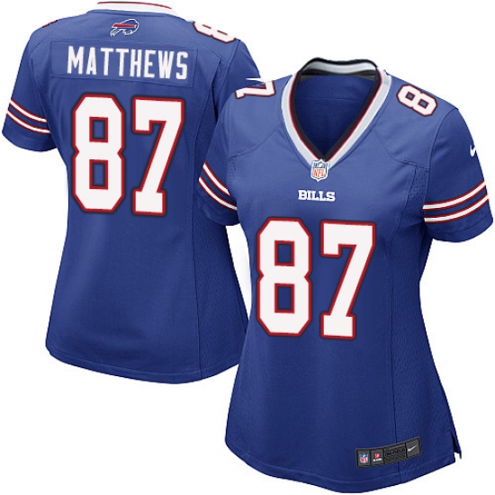 Home>NFL>Buffalo Bills>Jordan Matthews>Women's Nike Buffalo Bills #87 Jordan Matthews Game Royal Blue Team Color NFL Jersey