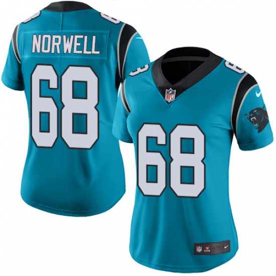 Women's Nike Carolina Panthers #68 Andrew Norwell Blue Alternate Vapor Untouchable Limited Player NFL Jersey