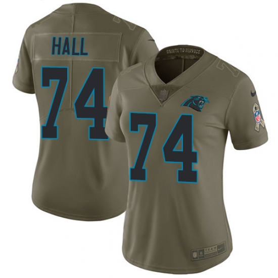 Home>NFL>Carolina Panthers>Daeshon Hall>Women's Nike Carolina Panthers #74 Daeshon Hall Limited Olive 2017 Salute to Service NFL Jersey