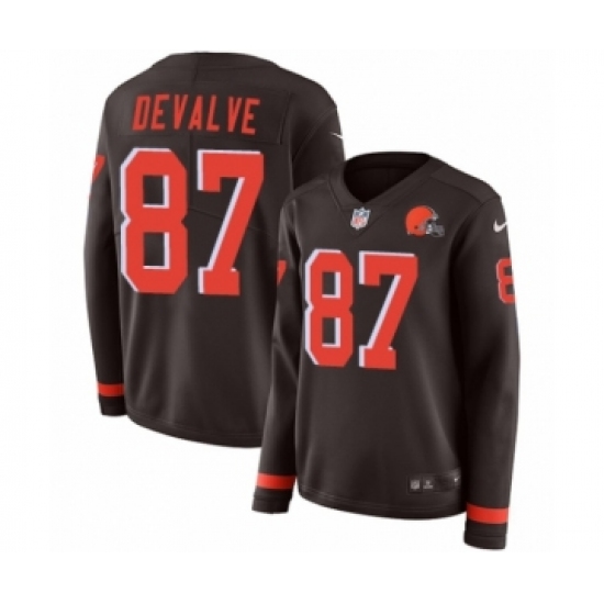 Women's Nike Cleveland Browns #87 Seth DeValve Limited Brown Therma Long Sleeve NFL Jersey
