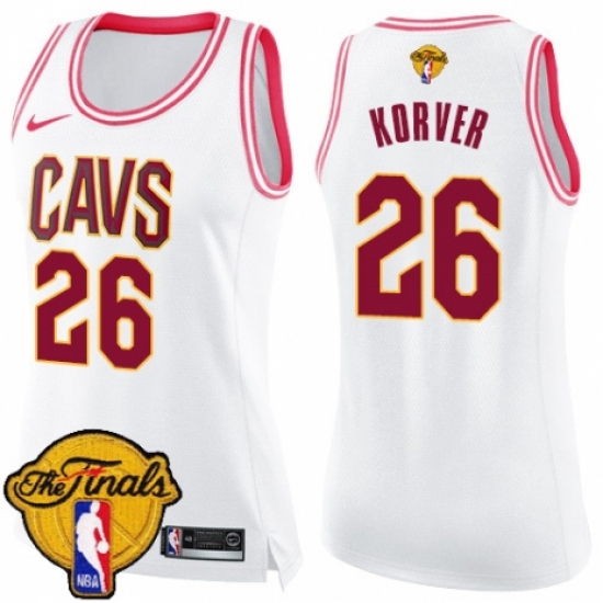 Women's Nike Cleveland Cavaliers #26 Kyle Korver Swingman White/Pink Fashion 2018 NBA Finals Bound NBA Jersey