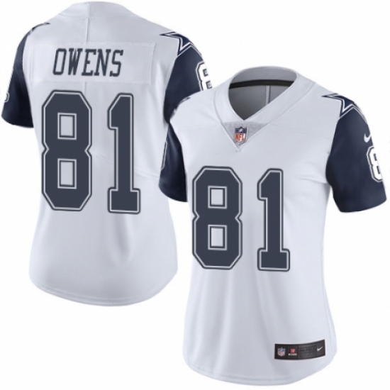 >Women's Nike Dallas Cowboys #81 Terrell Owens Limited White Rush Vapor Untouchable NFL Jersey