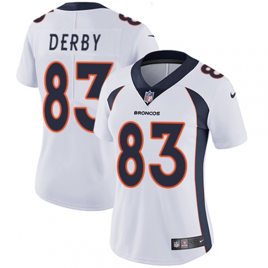 Home>NFL>Denver Broncos>A.J. Derby>Women's Nike Denver Broncos #83 A.J. Derby White Vapor Untouchable Limited Player NFL Jersey