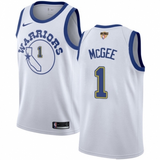 >Women's Nike Golden State Warriors #1 JaVale McGee Authentic White Hardwood Classics 2018 NBA Finals Bound NBA Jersey