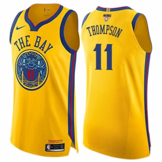 Men's Nike Golden State Warriors #11 Klay Thompson Authentic Gold 2018 NBA Finals Bound NBA Jersey - City Edition