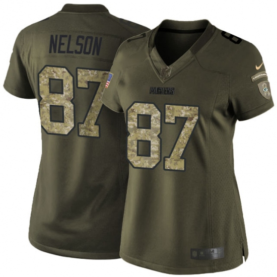Women's Nike Green Bay Packers #87 Jordy Nelson Elite Green Salute to Service NFL Jersey