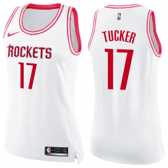 Women's Nike Houston Rockets #17 PJ Tucker White Pink NBA Swingman Fashion Jersey