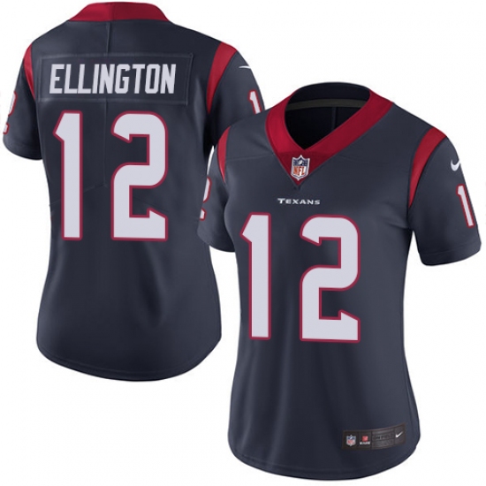 Home>NFL>Houston Texans>Bruce Ellington>Women's Nike Houston Texans #12 Bruce Ellington Navy Blue Team Color Vapor Untouchable Limited Player NFL Jersey