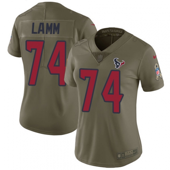 >Women's Nike Houston Texans #74 Kendall Lamm Limited Olive 2017 Salute to Service NFL Jersey