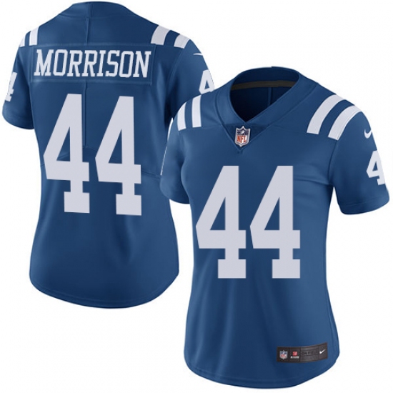 Home>NFL>Indianapolis Colts>Antonio Morrison>Women's Nike Indianapolis Colts #44 Antonio Morrison Limited Royal Blue Rush Vapor Untouchable NFL Jersey