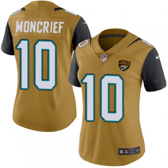 >Women's Nike Jacksonville Jaguars #10 Donte Moncrief Limited Gold Rush Vapor Untouchable NFL Jersey