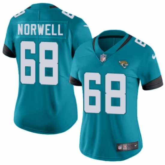 Women's Nike Jacksonville Jaguars #68 Andrew Norwell Teal Green Team Color Vapor Untouchable Limited Player NFL Jersey