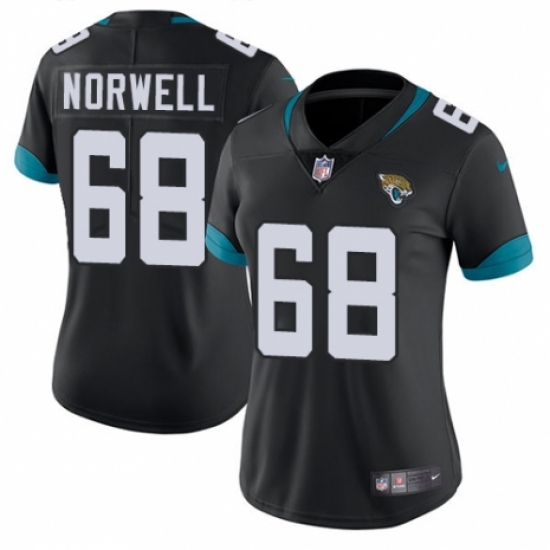 >Women's Nike Jacksonville Jaguars #68 Andrew Norwell Teal Green Team Color Vapor Untouchable Limited Player NFL Jersey
