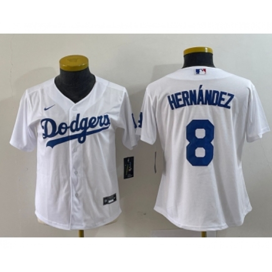 Women's Nike Los Angeles Dodgers #8 Kike Hernandez White Stitched Cool Base Jersey