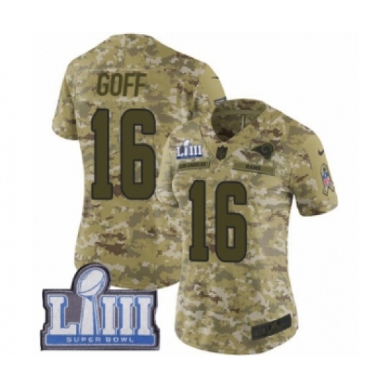 >Women's Nike Los Angeles Rams #16 Jared Goff Limited Camo 2018 Salute to Service Super Bowl LIII Bound NFL Jersey