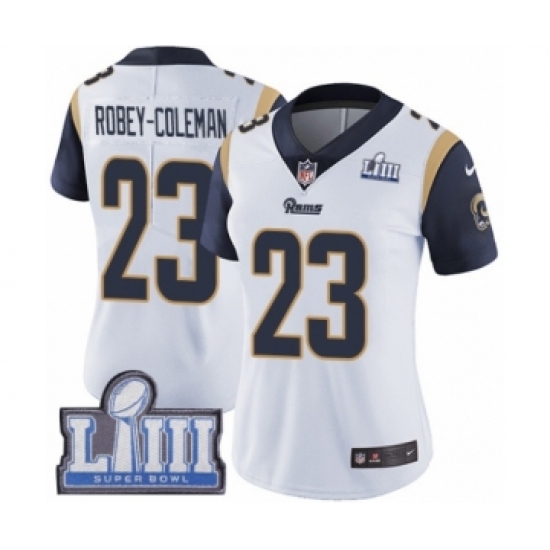 >Women's Nike Los Angeles Rams #23 Nickell Robey-Coleman White Vapor Untouchable Limited Player Super Bowl LIII Bound NFL Jersey