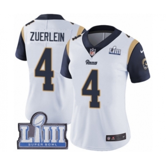 Women's Nike Los Angeles Rams #4 Greg Zuerlein White Vapor Untouchable Limited Player Super Bowl LIII Bound NFL Jersey