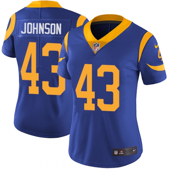 Home>NFL>Los Angeles Rams>John Johnson>Women's Nike Los Angeles Rams #43 John Johnson Royal Blue Alternate Vapor Untouchable Limited Player NFL Jersey