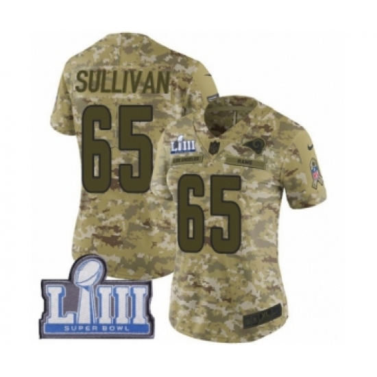Women's Nike Los Angeles Rams #65 John Sullivan Limited Camo 2018 Salute to Service Super Bowl LIII Bound NFL Jersey