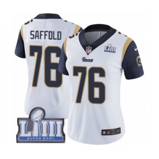 >Women's Nike Los Angeles Rams #76 Rodger Saffold White Vapor Untouchable Limited Player Super Bowl LIII Bound NFL Jersey