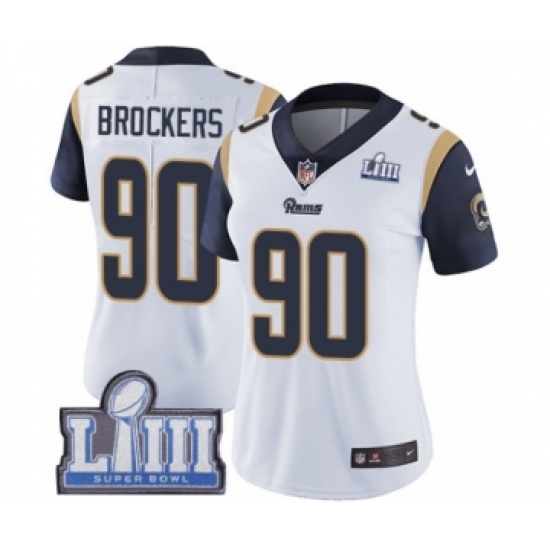 >Women's Nike Los Angeles Rams #90 Michael Brockers White Vapor Untouchable Limited Player Super Bowl LIII Bound NFL Jersey