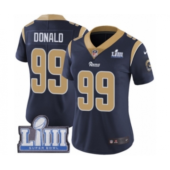 Women's Nike Los Angeles Rams #99 Aaron Donald Navy Blue Team Color Vapor Untouchable Limited Player Super Bowl LIII Bound NFL Jersey