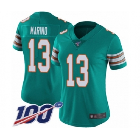 Women's Nike Miami Dolphins #13 Dan Marino Aqua Green Alternate Vapor Untouchable Limited Player 100th Season NFL Jersey