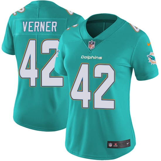 Home>NFL>Miami Dolphins>Alterraun Verner>Women's Nike Miami Dolphins #42 Alterraun Verner Aqua Green Team Color Vapor Untouchable Limited Player NFL Jersey