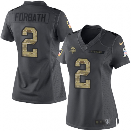 Home>NFL>Minnesota Vikings>Kai Forbath>Women's Nike Minnesota Vikings #2 Kai Forbath Limited Black 2016 Salute to Service NFL Jersey