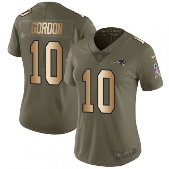 >Women's Nike New England Patriots #10 Josh Gordon Limited Olive Gold 2017 Salute to Service NFL Jersey