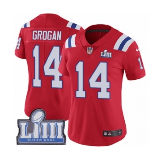 Women's Nike New England Patriots #14 Steve Grogan Red Alternate Vapor Untouchable Limited Player Super Bowl LIII Bound NFL Jersey