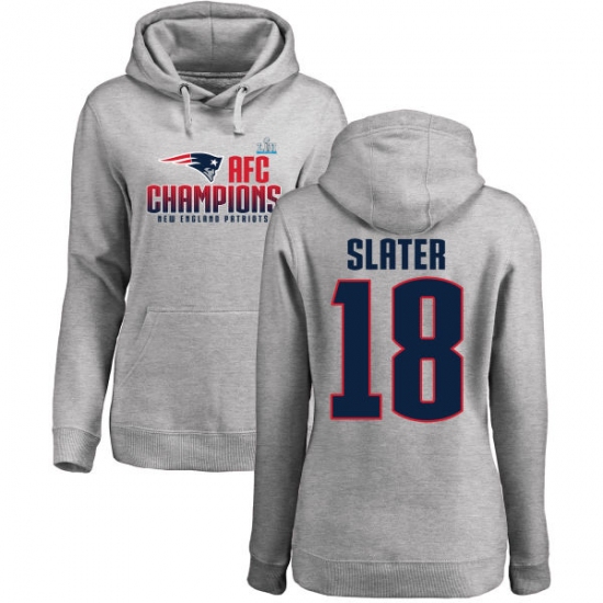 >Women's Nike New England Patriots #18 Matthew Slater Heather Gray 2017 AFC Champions Pullover Hoodie