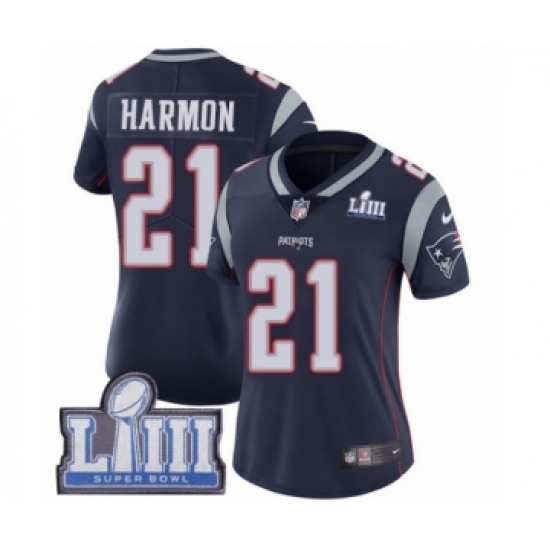 Women's Nike New England Patriots #21 Duron Harmon Navy Blue Team Color Vapor Untouchable Limited Player Super Bowl LIII Bound NFL Jersey