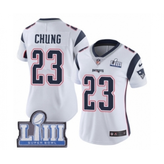 >Women's Nike New England Patriots #23 Patrick Chung White Vapor Untouchable Limited Player Super Bowl LIII Bound NFL Jersey