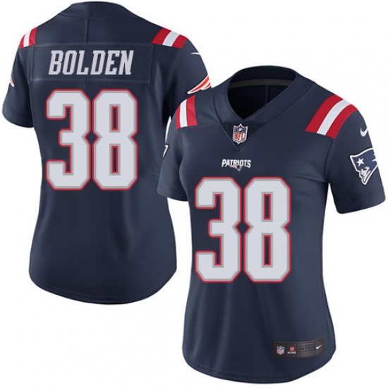 Home>NFL>New England Patriots>Brandon Bolden>Women's Nike New England Patriots #38 Brandon Bolden Limited Navy Blue Rush Vapor Untouchable NFL Jersey