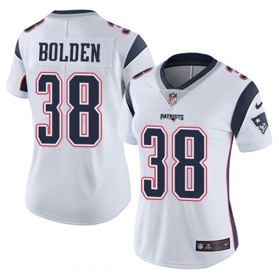 Home>NFL>New England Patriots>Brandon Bolden>Women's Nike New England Patriots #38 Brandon Bolden White Vapor Untouchable Limited Player NFL Jersey