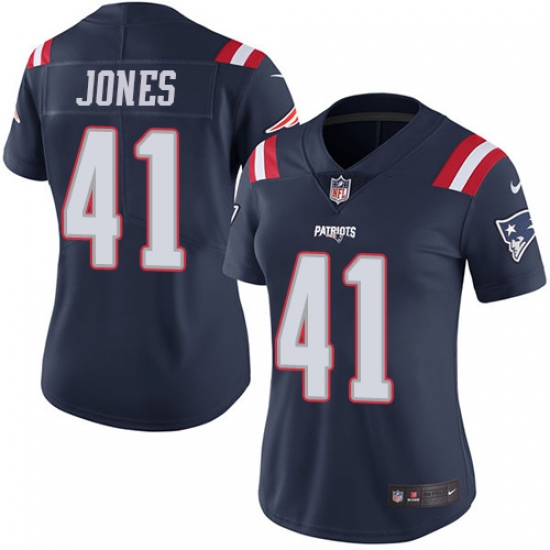 Women's Nike New England Patriots #41 Cyrus Jones Limited Navy Blue Rush Vapor Untouchable NFL Jersey