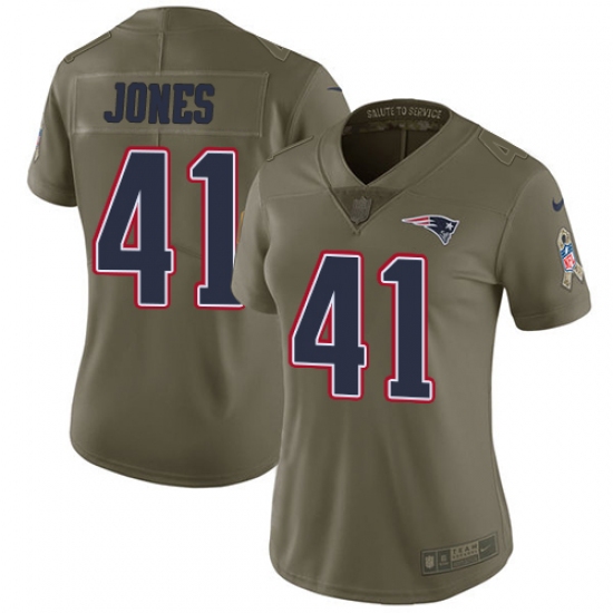 Home>NFL>New England Patriots>Cyrus Jones>Women's Nike New England Patriots #41 Cyrus Jones Limited Olive 2017 Salute to Service NFL Jersey