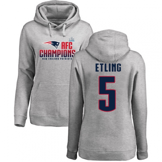 Women's Nike New England Patriots #5 Danny Etling Heather Gray 2017 AFC Champions Pullover Hoodie