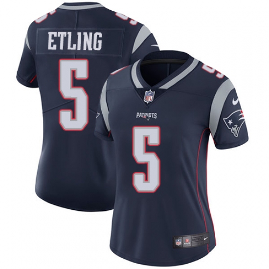 Women's Nike New England Patriots #5 Danny Etling Navy Blue Team Color Vapor Untouchable Limited Player NFL Jersey