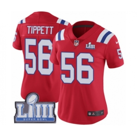 >Women's Nike New England Patriots #56 Andre Tippett Red Alternate Vapor Untouchable Limited Player Super Bowl LIII Bound NFL Jersey