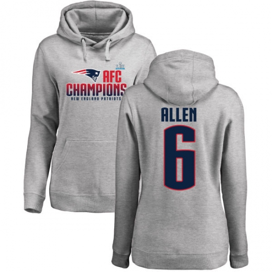 Home>NFL>New England Patriots>Ryan Allen>Women's Nike New England Patriots #6 Ryan Allen Heather Gray 2017 AFC Champions Pullover Hoodie