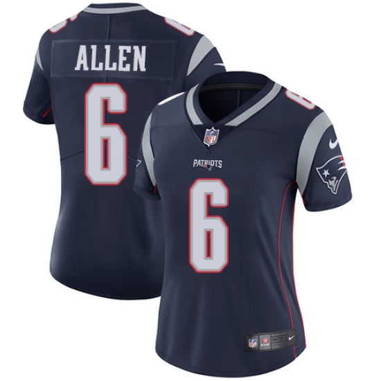 Home>NFL>New England Patriots>Ryan Allen>Women's Nike New England Patriots #6 Ryan Allen Navy Blue Team Color Vapor Untouchable Limited Player NFL Jersey