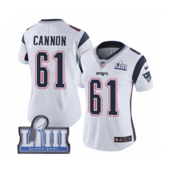 >Women's Nike New England Patriots #61 Marcus Cannon White Vapor Untouchable Limited Player Super Bowl LIII Bound NFL Jersey