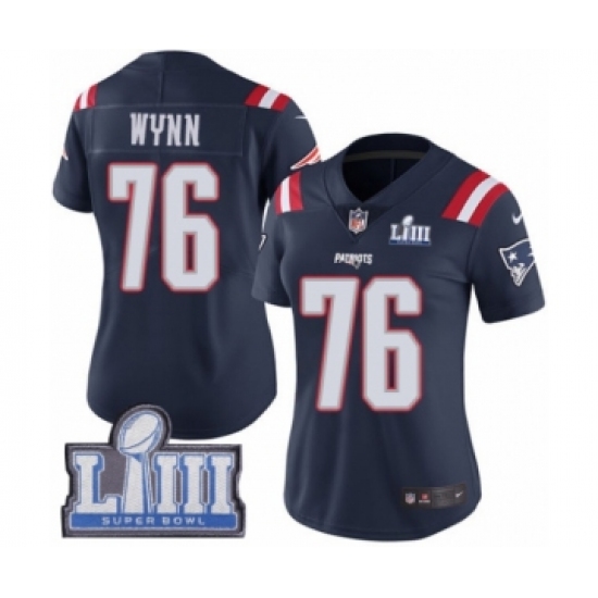 >Women's Nike New England Patriots #76 Isaiah Wynn Limited Navy Blue Rush Vapor Untouchable Super Bowl LIII Bound NFL Jersey