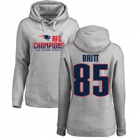 Women's Nike New England Patriots #85 Kenny Britt Heather Gray 2017 AFC Champions Pullover Hoodie