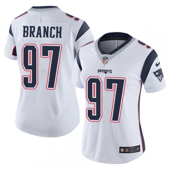 Home>NFL>New England Patriots>Alan Branch>Women's Nike New England Patriots #97 Alan Branch White Vapor Untouchable Limited Player NFL Jersey