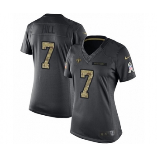 >Women's Nike New Orleans Saints #7 Taysom Hill Limited Black 2016 Salute to Service NFL Jersey