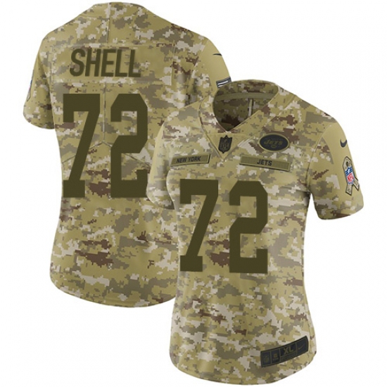 >Women's Nike New York Jets #72 Brandon Shell Limited Camo 2018 Salute to Service NFL Jersey